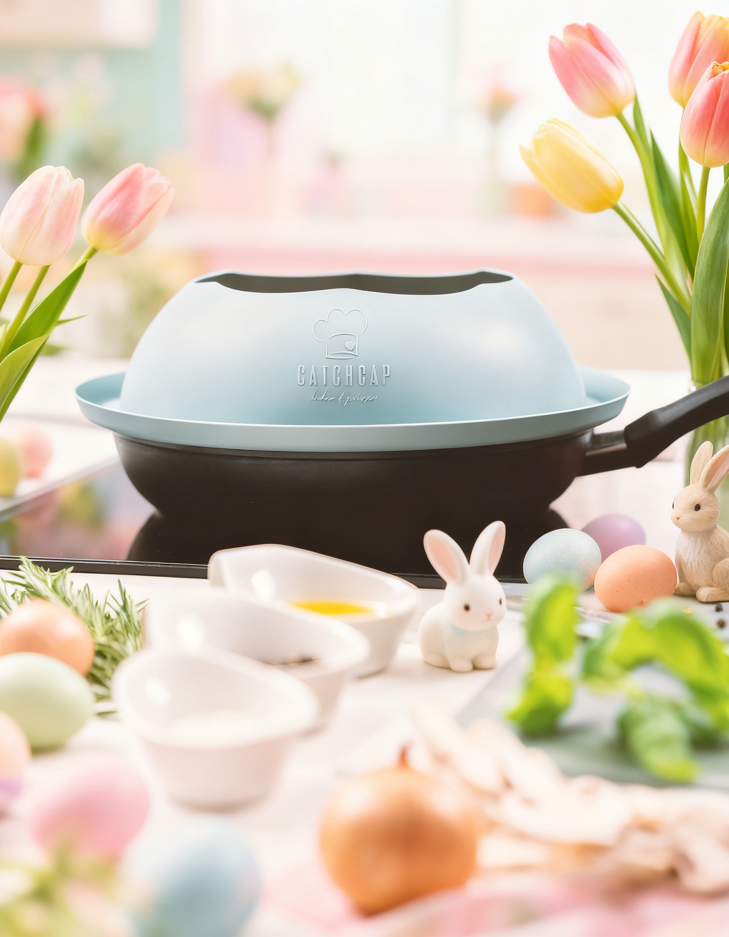 Damit beim Osterbrunch oder Festessen nichts daneben geht, sorgt unser CATCHCAP Pfannenspritzschutz für eine saubere Küche – ganz ohne Stress. 😉